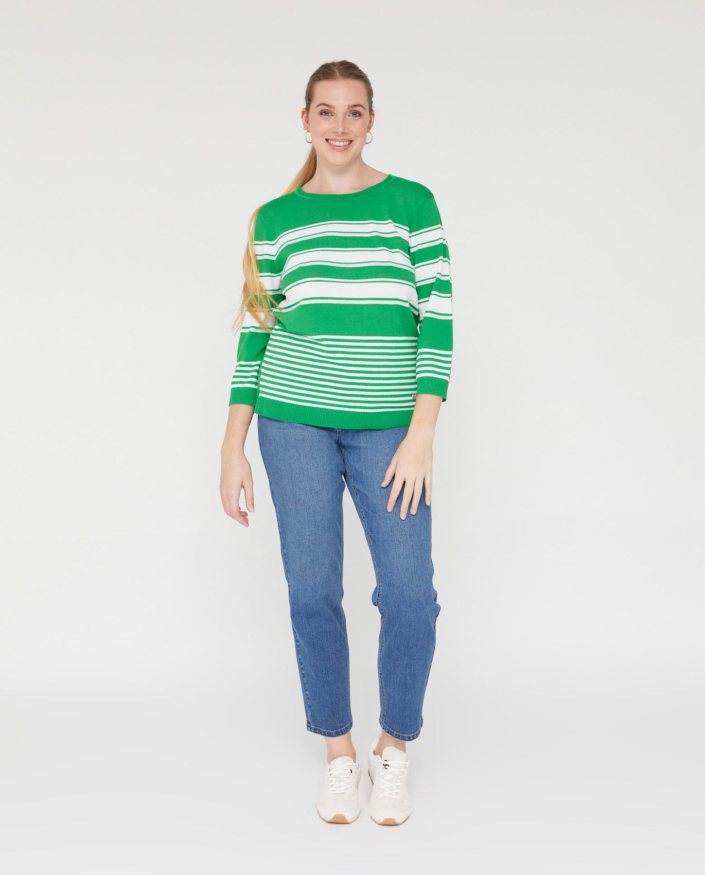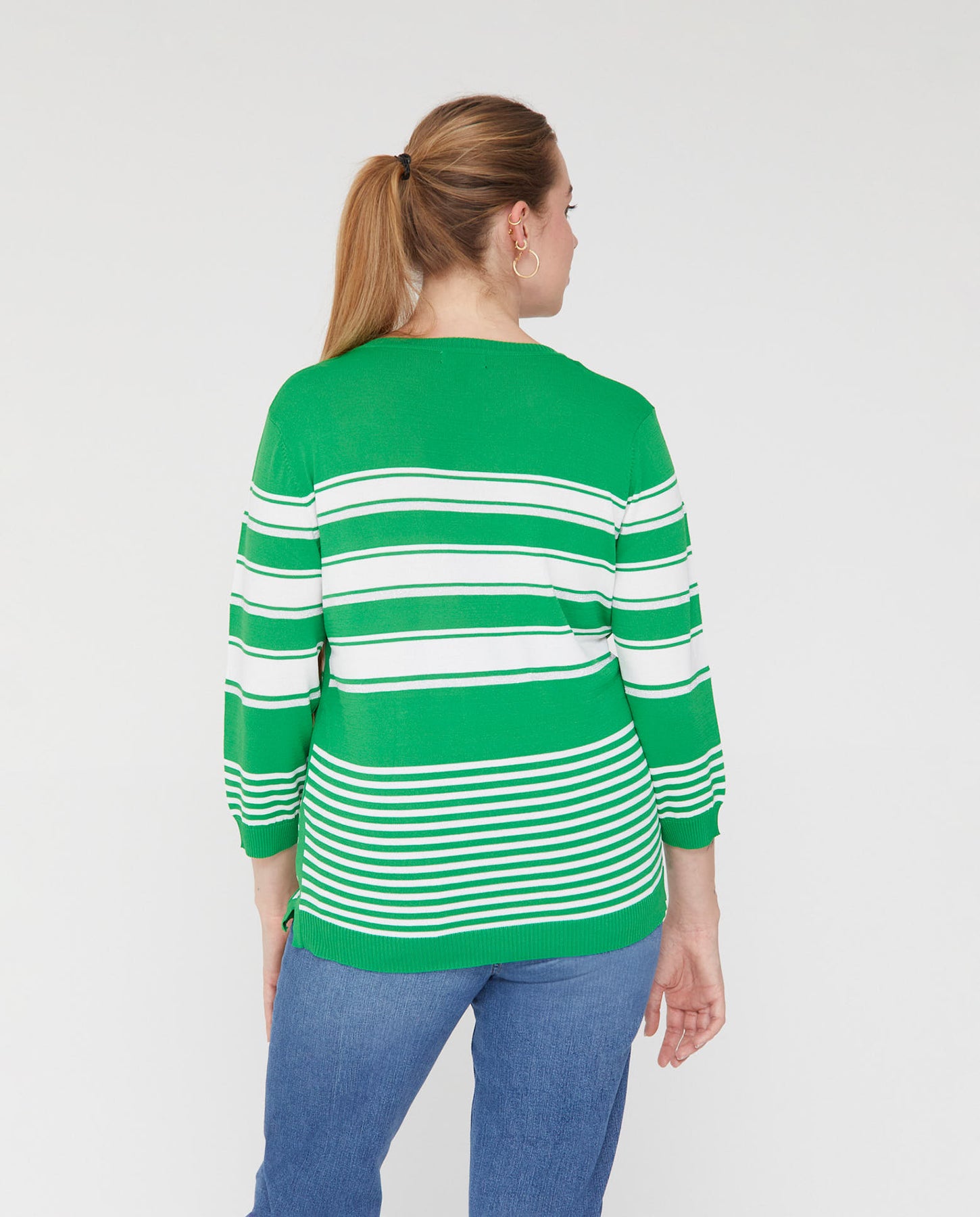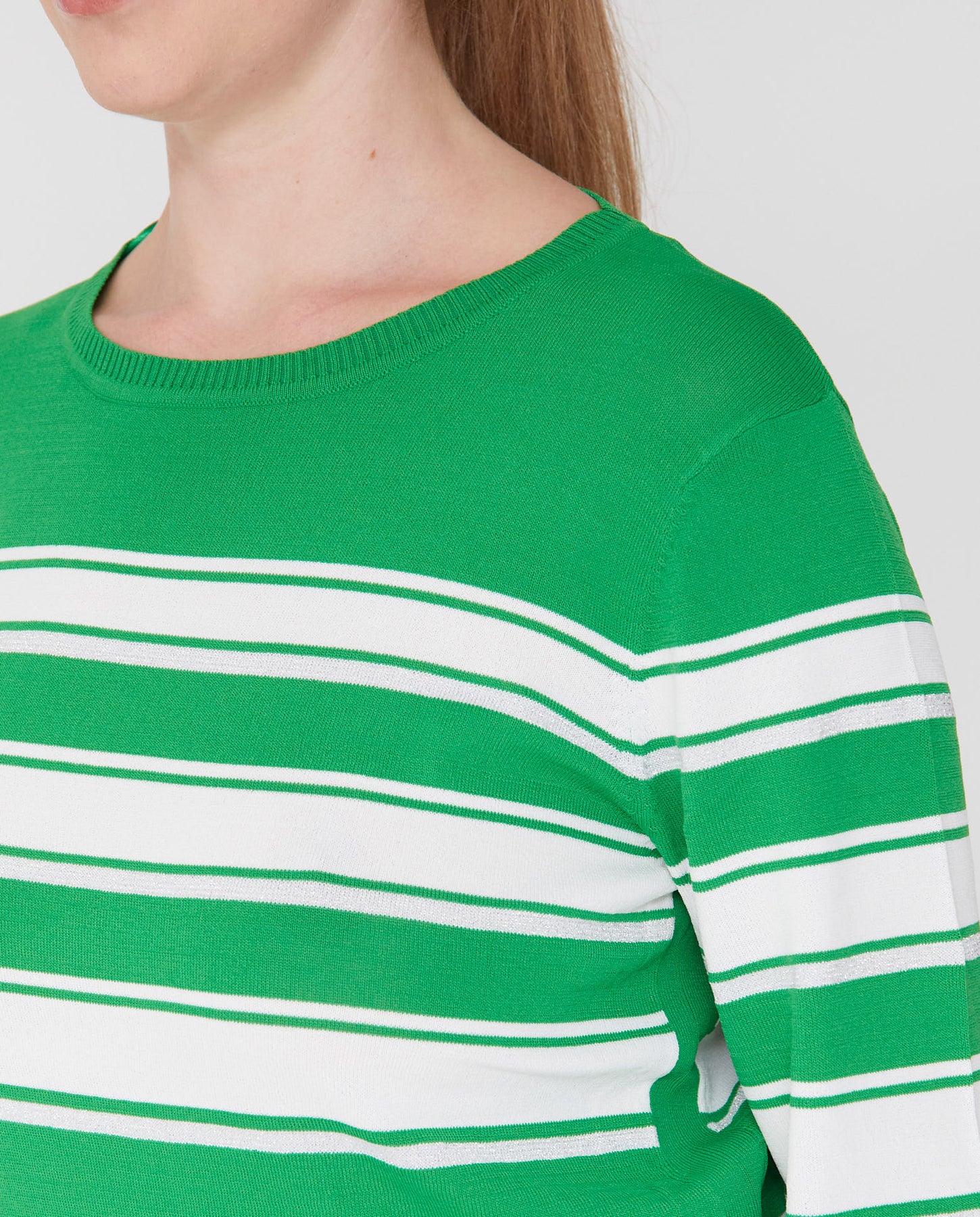 Jersey Rayas Hilo Metalizado Manga Tres Cuartos  Verde