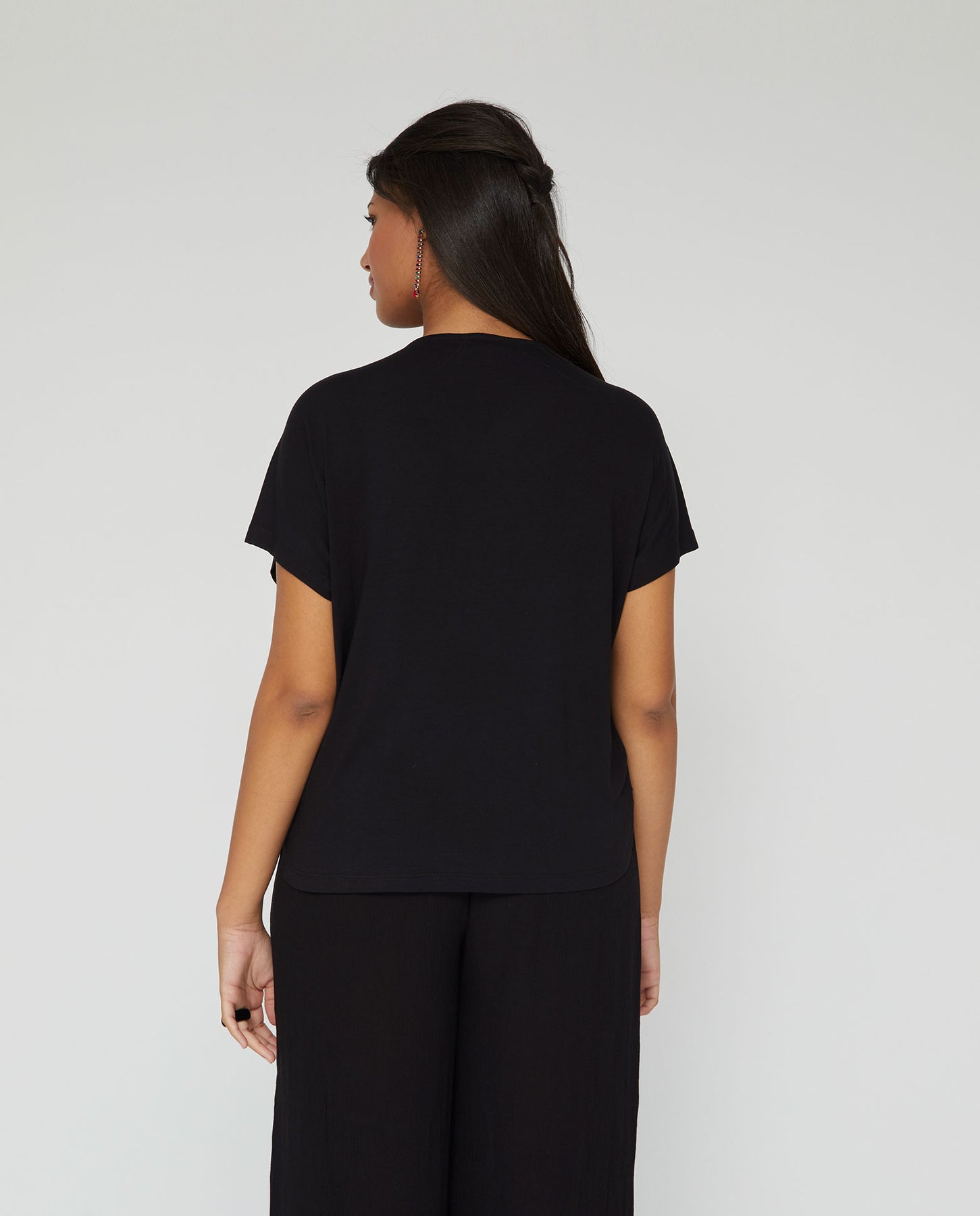 Camiseta Ecote En Pico Con Lentejuelas Negro