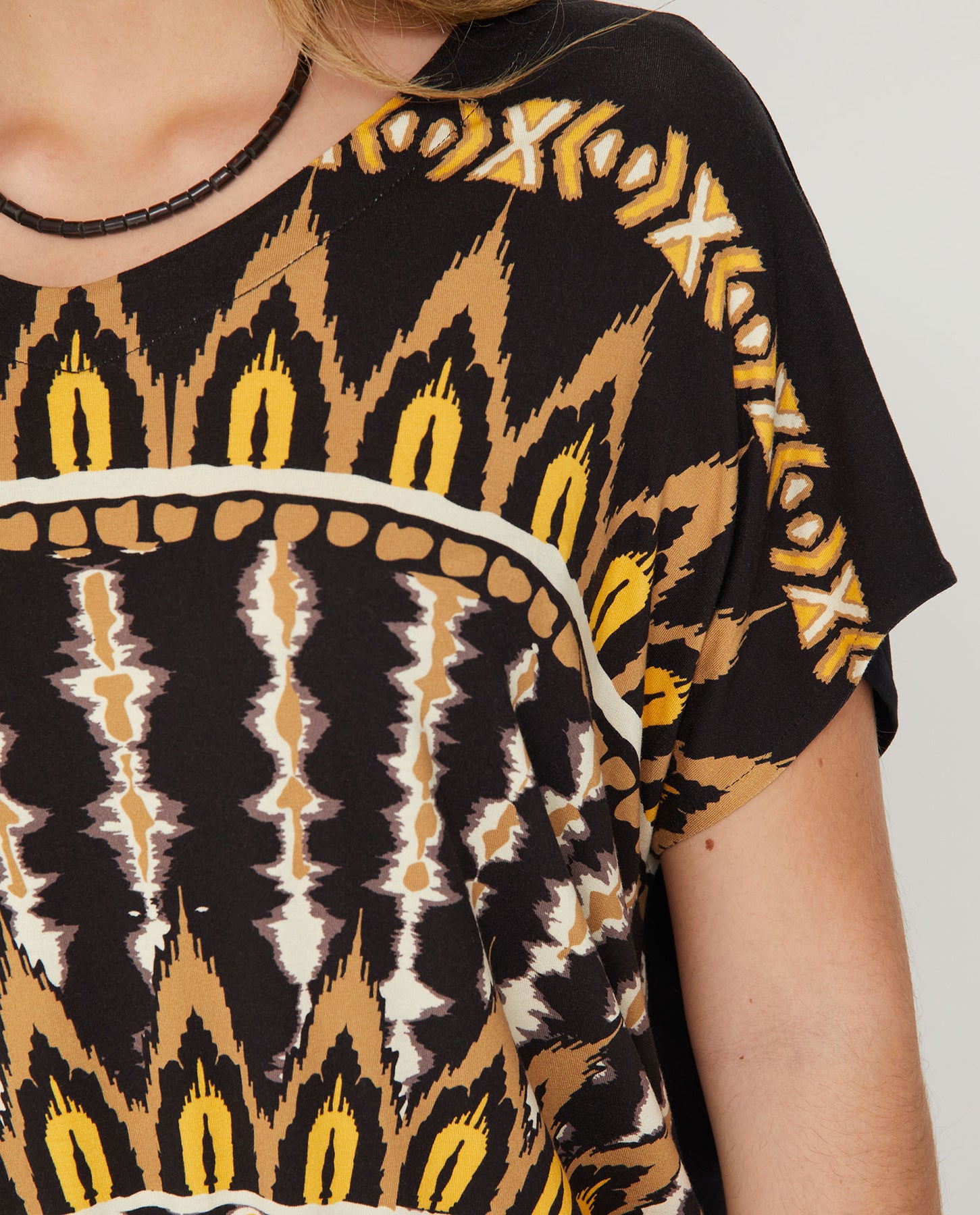 Camiseta Escote Pico Con Estampado Mandala Negro